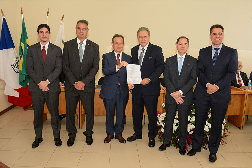 A solenidade de assinatura da adesão das Comarcas de Araxá e Patos de Minas à CPE-TR ocorreu no Fórum Desembargador Eustáquio da Cunha Peixoto, na Comarca de Ibiá (Crédito: Riva Moreira / TJMG)